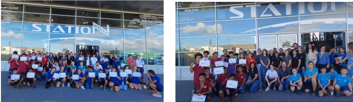 La cérémonie s’est terminée par une photo de groupes et un moment de convivialité autour d’un goûter, offrant aux élèves, enseignants, autres personnels éducatifs, membres des délégations académiques à la culture scientifique et à l’éducation au développement durable l’occasion de poursuivre les échanges et partager leurs impressions dans une atmosphère chaleureuse. Au nom de Monsieur le Vice-recteur, nous remercions Monsieur Christopher GYGÈS, membre du Gouvernement en charge de l’économie et de la transition numérique, et son équipe qui ont accepté d’accueillir ce festival à la Station N, lieu fédérateur et structurant de l’écosystème Tech et numérique du territoire calédonien. Leur soutien a concouru fortement à la réussite de ce temps de valorisation des travaux menés les élèves et étudiants.